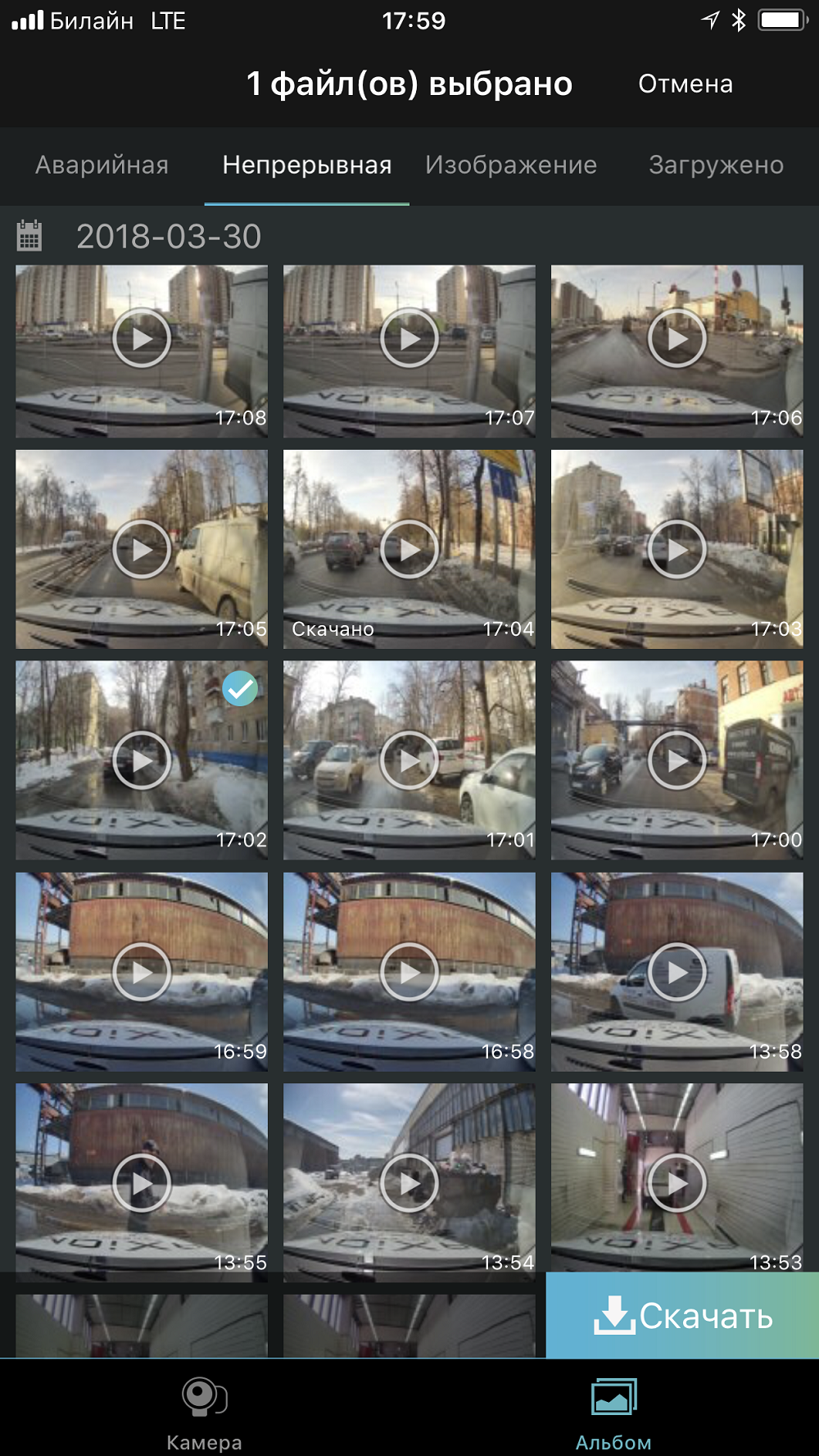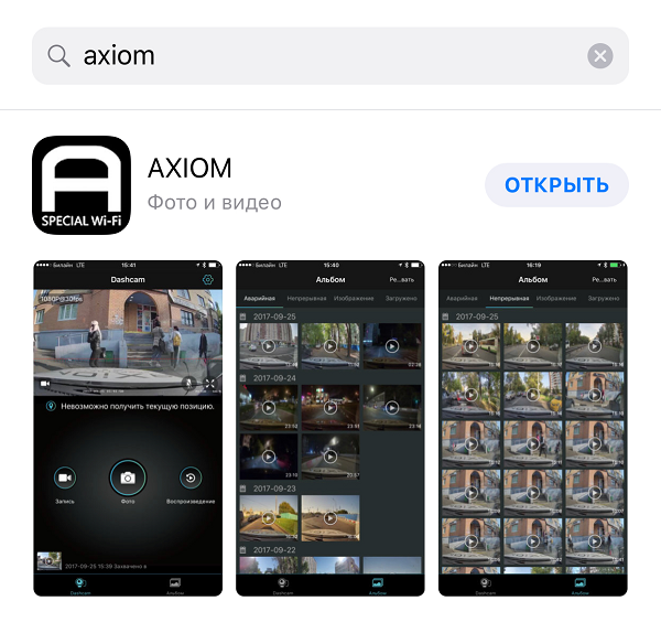 3. Запустите приложение AXIOM SPECIAL Wi-Fi, смотрите видеозаписи в режиме реального времени, скачивайте нужные фрагменты в память смартфона